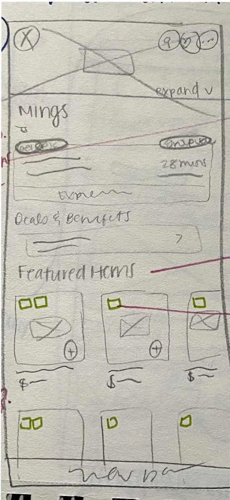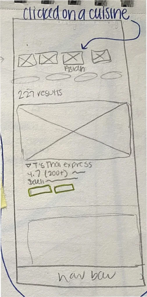 To begin ideating solutions, I first conducted a thorough analysis of DoorDash's current design to identify gaps and opportunities related to dietary preferences. This analysis highlighted issues such as limited visibility of dietary filters, inconsistent labeling of menu items, and a lack of customization options for users with dietary restrictions. Armed with these insights, I developed low-fidelity wireframes to explore ways to address these challenges. These wireframes focused on enhancing the user journey by incorporating clear dietary filters, intuitive customization options, and better labeling to ensure users could confidently find meals that aligned with their needs.