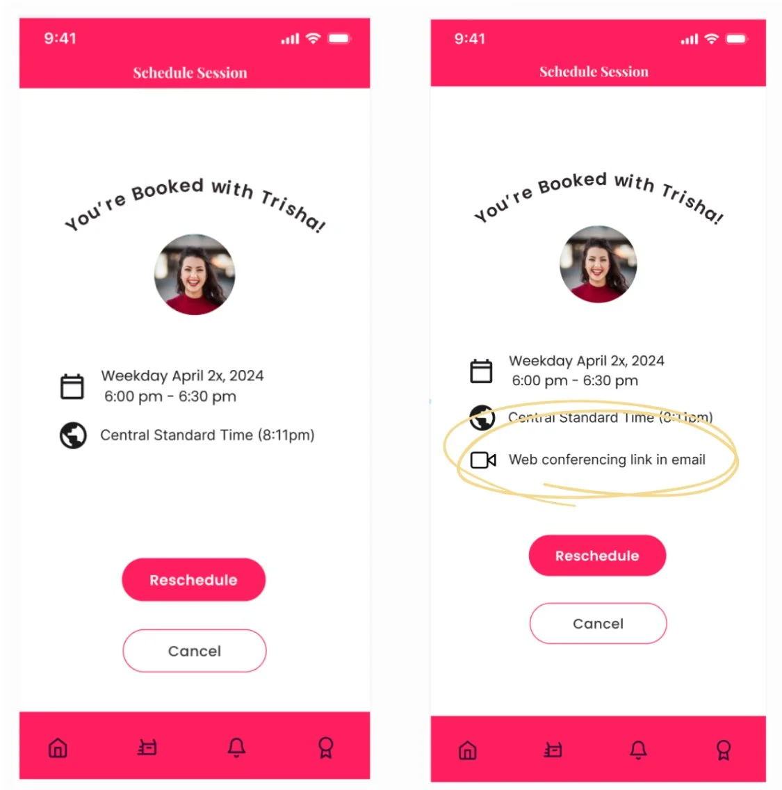 To make it clear, on the final confirmation page, users will now see that the connection is virtual via web conferencing.