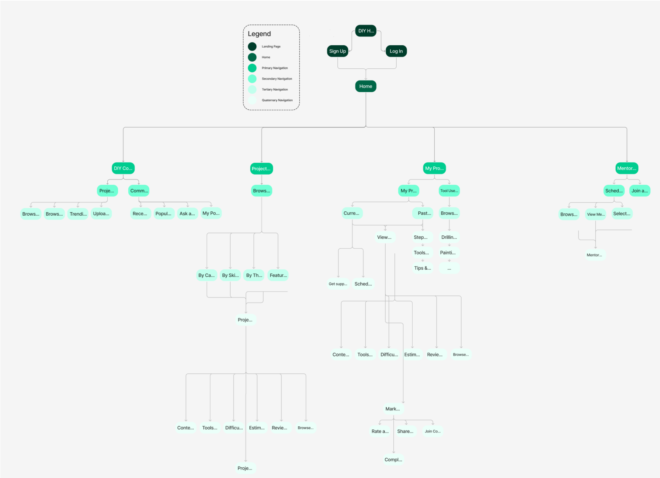The site map is designed with four key sections, each crafted to enhance the DIY experience: